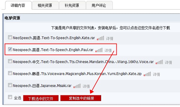 男声的 Paul 引擎音质较佳,只下载男声引擎即可, 网页中的其它资源不用下载。