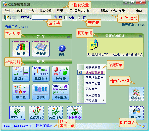 CJC好玩背单词经过多年的不断改进, 已经获得众多用户的信任并给出很高的评价! 十大特色,成就最专业的背单词软件!