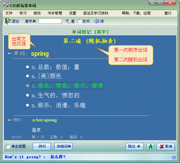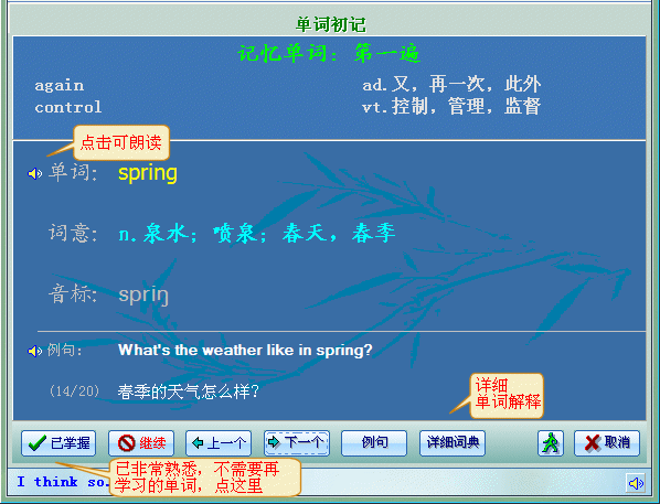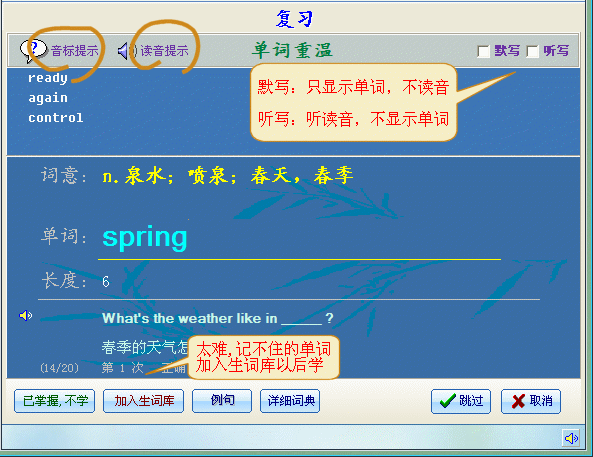 如果你忘了一个单词的意思或读音,可在主画面的 [