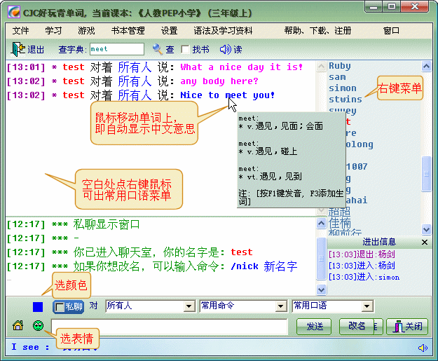 独有“英语聊天室”, 可与其它用户方便的进行学习交流