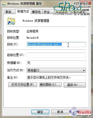 想恢复原来的方式?其实很简单,只需要在资源管理器指向的快捷方式稍作修改就可以达到目的。首先关闭所有的资源管理窗口,然后按住Shift并鼠标右击任务栏上的资源管理器图标,选 属性, 会显示出“快捷方式”标签,在目标框里默认路径结尾加上一个空格和英文逗号,点击确定完成。