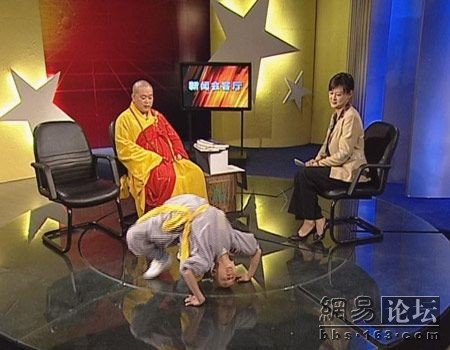 央视演播大厅里,不知他是要宣讲少林禅宗的精髓呢?还是又要为自己公司化经营少林寺而取得的辉煌成绩自吹自擂自赞呢?看着这个翻筋斗的小和尚,难道少林寺除了马戏团式的把戏外,就真的没有一点拿的出手的东西了?