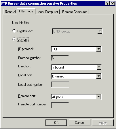 因为你无法预计FTP服务器会将数据通道分配到哪个高编号端口上,所以你必须打开所有的高编号端口。这在你能够确保只有FTP客户端在只有在访问FTP服务器时才会使用那些(高编号端口的情况下)固然很好。并且你可以限制只有FTP客户端才能使用那些(高编号端口),这样你就可以阻止其他的应用访问高编号端口。