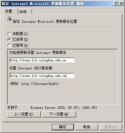 http://wsus.lib.tsinghua.edu.cn,然后单击“确定”:
