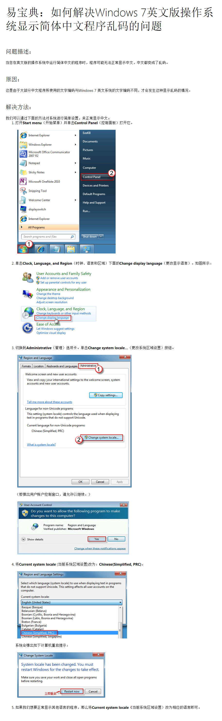 标题: 如何解决Windows 7英文版操作系统显示简体中文程序乱码的问题